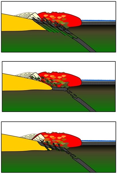 Lastly, some other geologists believe that trans-tensional shear zones were present that allowed for mantle material to rise into the crust. lower image